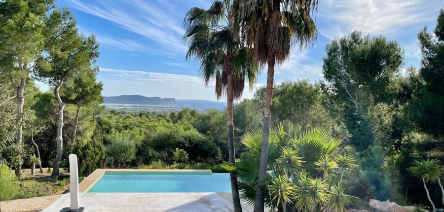 CW Group Ibiza presenta esta hermosa villa en San José a pocos minutos de Ibiza, que ofrece espectaculares vistas de la playa de Salinas y las montañas circundantes. La propiedad está muy bien cuidada y ofrece una gran piscina.