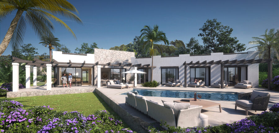Esta impresionante propiedad está enclavada en la serena campiña ibicenca, cerca de Santa Gertrudis, y ofrece una amplia parcela de 23.000 m² adornada con olivares, naranjos y muros de piedra tradicionales.