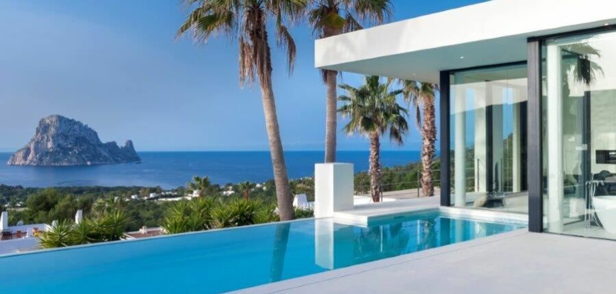 Una impresionante villa con vistas únicas a Es Vedra en Ibiza A stunning villa with unique views to Es Vedra in Ibiza Eine atemberaubende Villa mit einzigartigem Blick auf Es Vedra in Ibiza