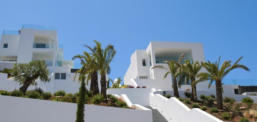 This modern villa has 4 bedrooms with private bathrooms, kitchen, spacious living room with dining room, large terraces with outdoor areas and a beautiful roof terrace with Jacuzzi.