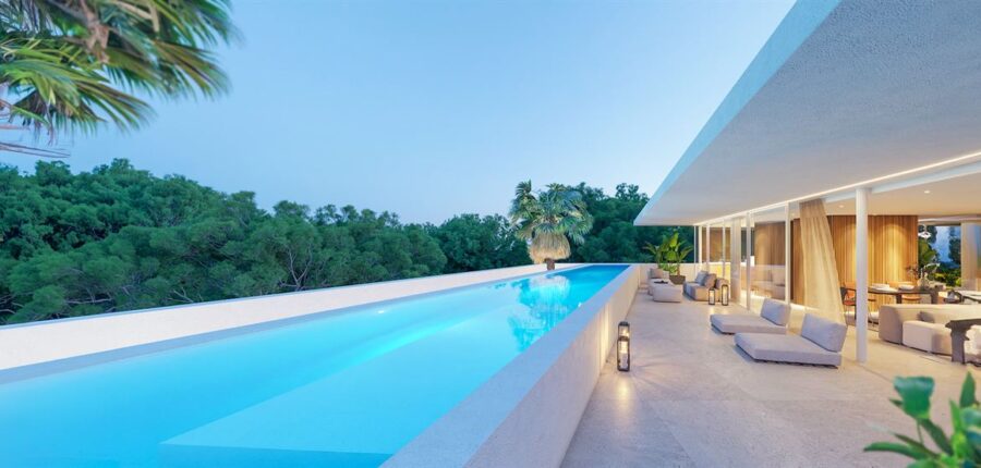 Eingebettet in der exklusiven Wohnanlage von Can Furnet verkörpert diese exquisite Neubauvilla anspruchsvollen Luxus und modernes, minimalistisches Design.